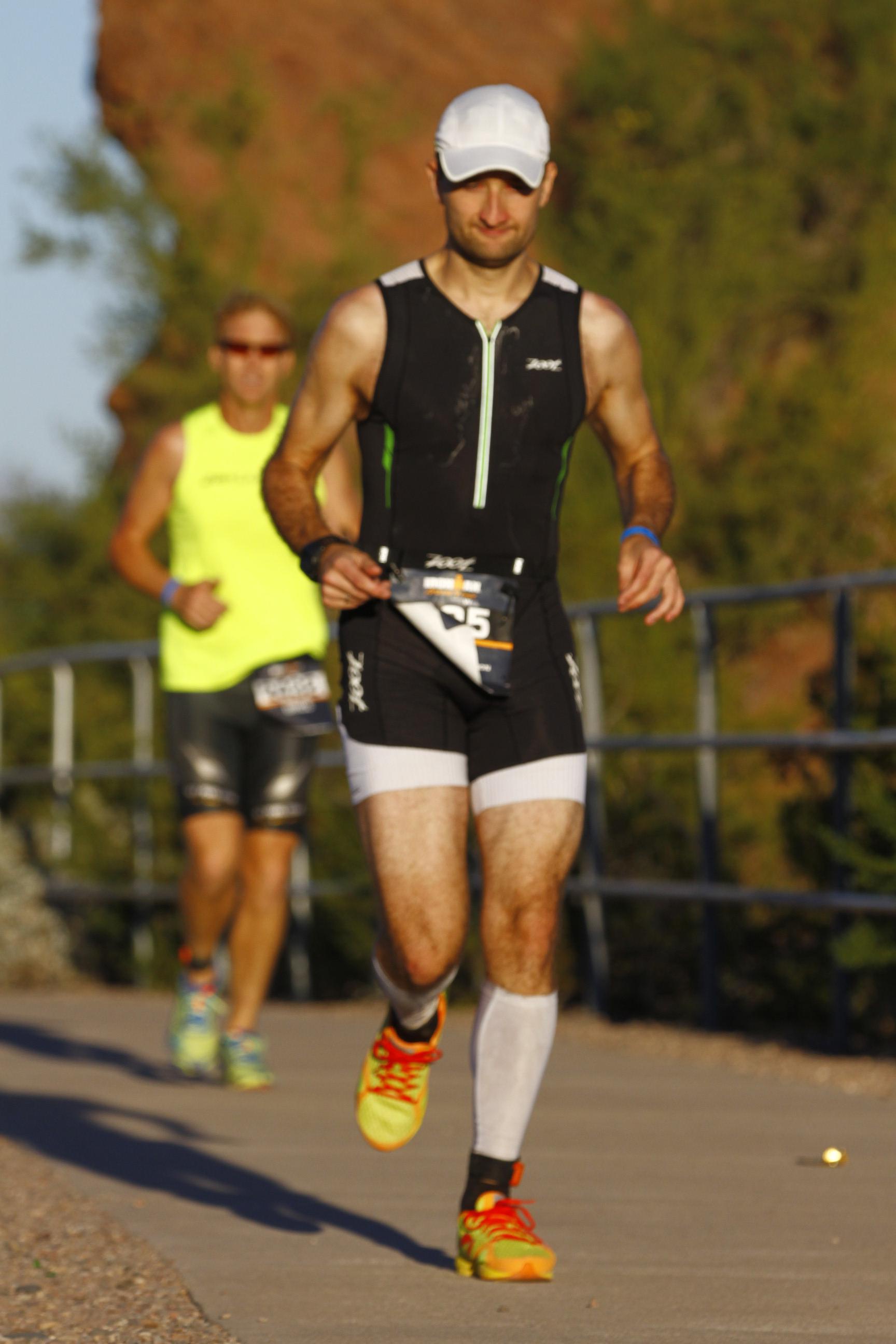 После гонки. Из-за того, что ключевым ограничителем стала не выносливость, а желудок, после гонки я себя чувствовал совсем иначе, чем после половинки. Во-первых, у меня почти не было знакомой «аэробной усталости». Во-вторых, что совсем необычно, не было аппетита. Даже через час после гонки мне не захотелось есть, и я отправился спать после железной дистанции, ничего не поев и почти ничего не выпив. Из-за непорядка с калориями меня бросало то в жар, то в холод, но спал в целом нормально. Даже утром поел почти без аппетита. Потом все восстановилось, и ко мне вернулся нормальный здоровый аппетит. Ну вот и все. Еще до Аризоны я записался еще на одну железную дистанцию. И если эта была моей «железной мечтой», то вторая может стать «железной аферой». Но пока я не принял решения об участии. Если поучаствую, расскажу вам в отчете.